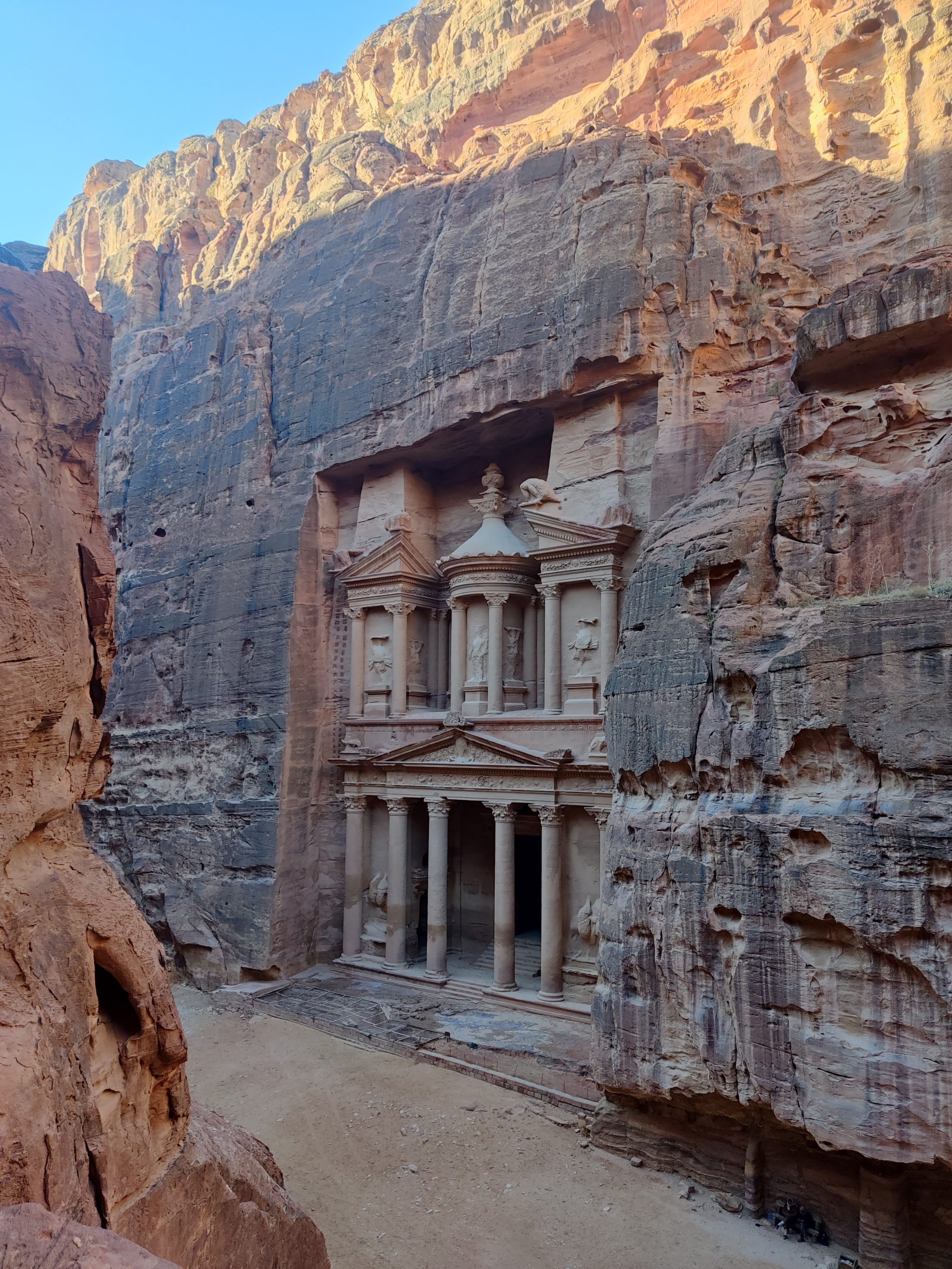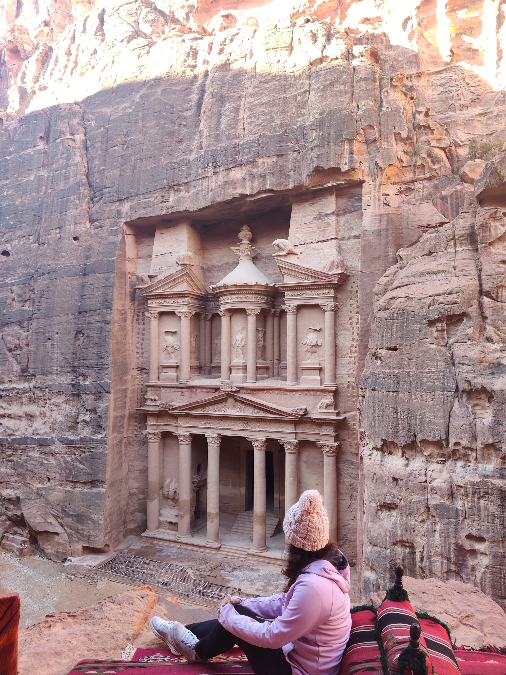 For what felt lilke an eternal walk, at long last we witnessed the first sight of Al-Khazaneh and it blew our mind. It is carved entirely in the sandstone rock and is a sight to behold.