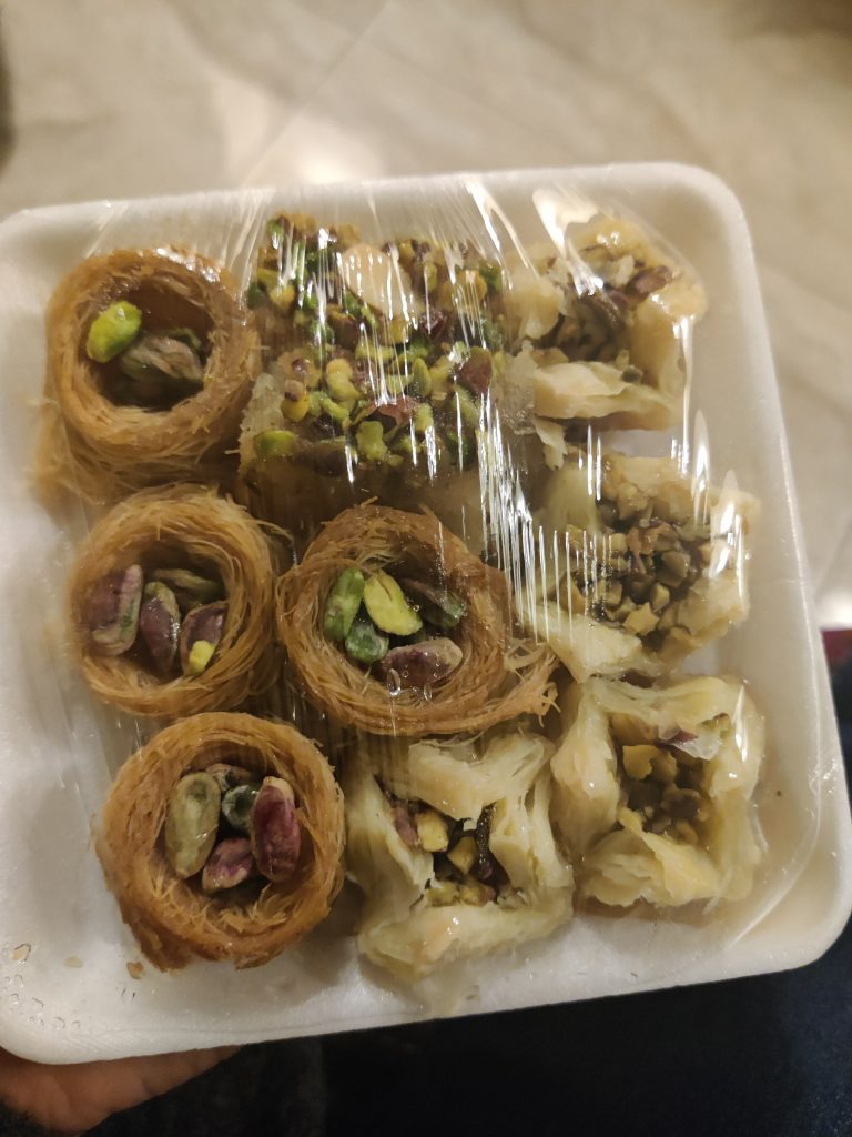 Next day we started early from Petra and reached Amman by evening. We still managed to grab our hands on some delectable local kunafah & other sweets. Funnily, the local are so welcoming and hospitable that they don’t let tourists pay for any thing that you want to try and insist that you try as much varieties and as many quantities that you desire. Plus, you are not obliged to buy from them.
