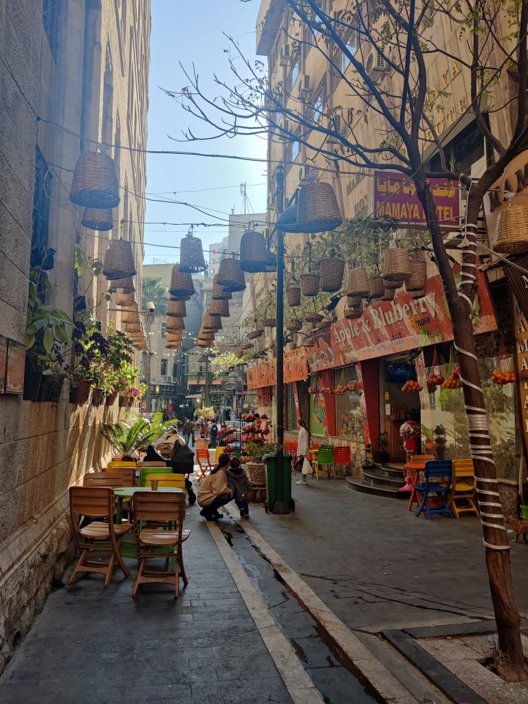 On our way to the Airbnb from the airport, we went past the old city center and that is what we planned to explore that evening. The map showed a nice 10 min walk, nothing our young legs couldn’t handle. It soon became evident why Amman is also called the city of stairs as the maps failed to show the elevation gain! We were hiking on cobbled alleyways with the smell of fresh food, the only motivation. Huffing and puffing we reached the old town square near Rainbow Street which was bustling with activity.
