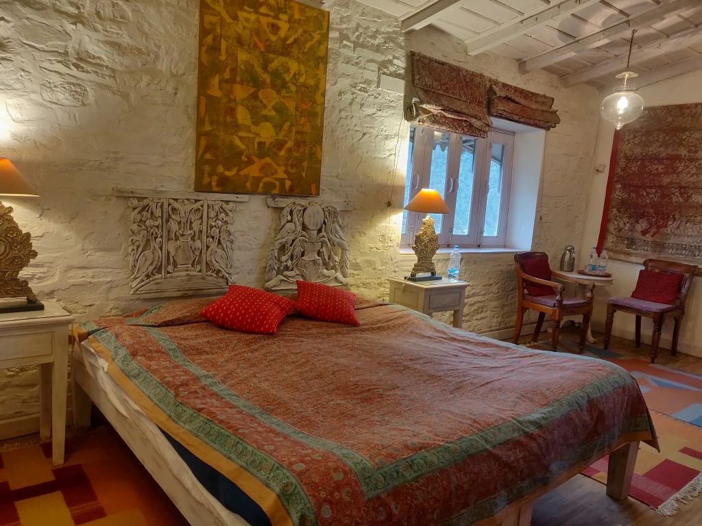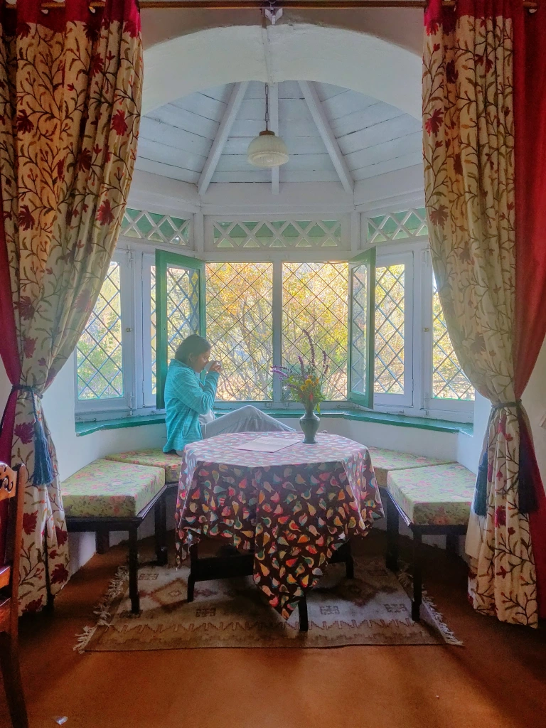 The property was surrounded by small houses and fruit orchards – apples, plums, limes. We were actually on the right path. On reaching the village of Ramgarh, we noticed small roads leading in different directions – Writer’s Bungalow, Old Bungalow, Ashok Vatika, Cliff House. We had booked the Writer’s bungalow for three nights on Shailendra’s recommendation. The check-in and the office hub is in the Old Bungalow which is a pre-independence era circuit house (aka Dak Bungalow) now leased out by the local government to Neemrana.