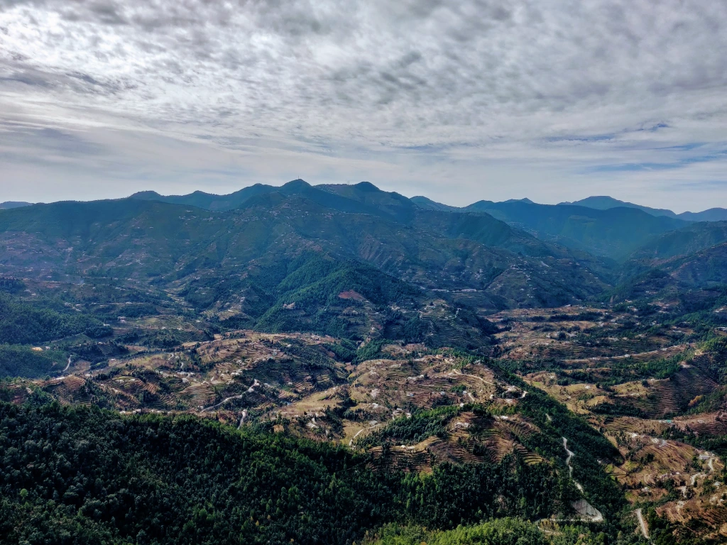 It was an uneventful drive up till Nainital when we saw a small turn onto an unpaved mountain road with no signage. Google was pointing towards it and we, hesitatingly, ventured on it. Knowing full well that it will be practically impossible to turn back given that there was a sheer 200ft drop into the valley on one side, we took our chances. With not a single soul in sight to guide us, each turn made me more uneasy. Sakshi, meanwhile, was oblivious to where the road was taking us while gorging on the guavas we had picked up. She was enjoying the surroundings and was soaking in the sounds of the forest, excited like a small kid. Her excitement was infectious and kept me distracted too until almost 15 mins later we were still on that road with no sign of civilization and no network to update the location. We planned to turn back after the next bend (so dependent on technology that we have stopped exploring the unknown, I tell ya!). As soon as we took the turn, right in front of us in the valley on each of those small hills were the Ramgarh bungalows, just as it was on the website.