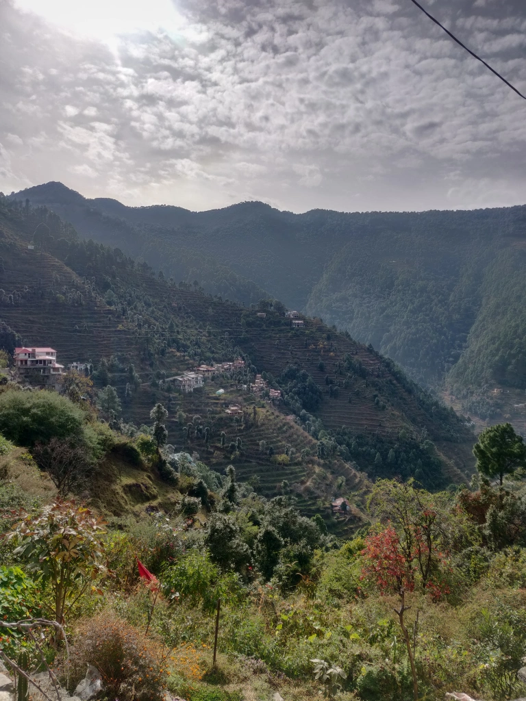 This bungalow has 2 sections, each with its own entrance and 3 rooms and a bath. We had booked one section. We quickly freshened up and headed out to explore the village with a guava in one hand. We passed the local school where a teacher was conducting P.E. drills. Next door was a huge commotion. We asked a few locals who told us about a marriage ceremony. Tried peeking in through the gates to see the celebrations in full swing. One of them told us that a marriage in the hills means people from all the nearby villages are invited. Its a festival of sorts!